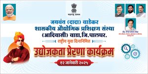 जयवंत (दादा) वाडेकर शासकीय औद्योगिक प्रशिक्षण संस्था (आदिवासी) वाडा , येथे दिनांक १२ जानेवारी २०२५ रोजी राष्ट्रीय युवा दिन निमित्त उद्योजकता प्रेरणा कार्यक्रम संपन्न झाला.