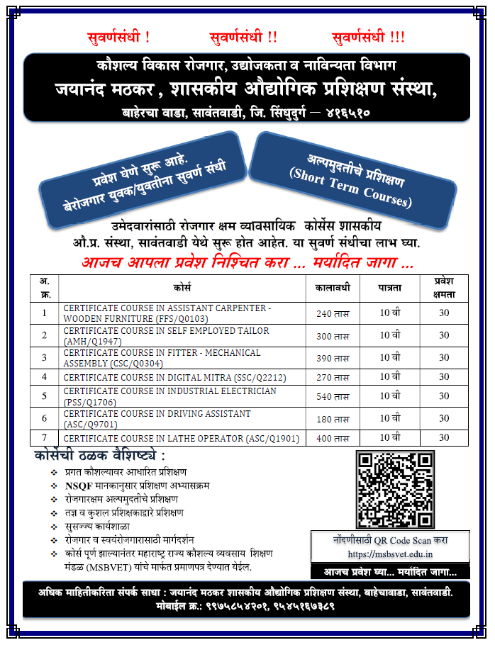 About - Jayanand Mathakar Government Industrial Training Institute, Sawantwadi, Dist. Sindhudurg